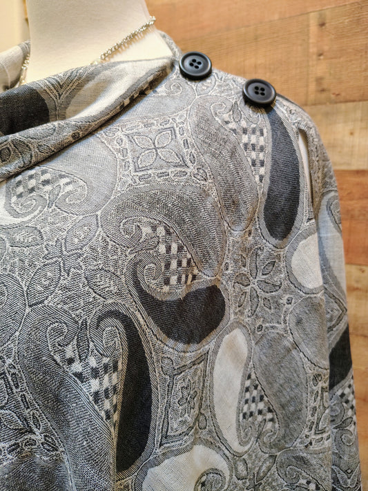 2 Button Shawls Original Design-Black & Grey Small Paisley Print